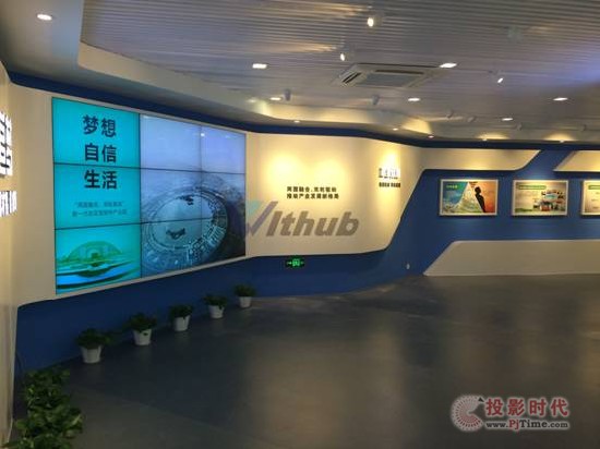 在展陈的最后是一个3通道桌面融合的投影显示大屏,主要显示软件园中明星企业和他们的宣传资料,超大的完整投影画面主要是由DMSR桌面融合处理器配合3台高分辨工程投影机缔造的,在这个大型计算机桌面之上,可将高清视频、图片、图表、现场影像等多种多媒体程序和文件一一呈现,并支持全屏独占模式。