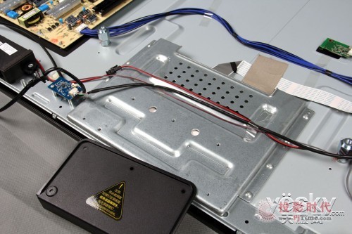 去除背壳后,康佳易TV 9800内部结构如下图。我们可以看到,这款电视机主要是由液晶屏以及若干电路板组成的。
