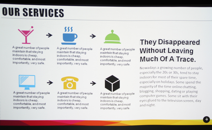 如今,老师在准备课件时,多数采用了PPT文档格式,这也是当下商务演示中的主要演示文档,光峰光电AL-UW360投影的画面可以清晰表现,画面颜色还原到位,文字清晰锐利,对比细节也不错。同时,3600流明亮度,在办公室正常环境光下也能清晰成像。