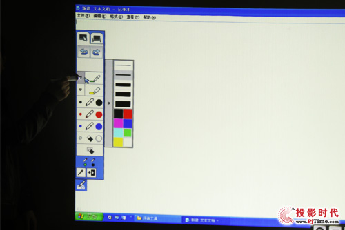 通过实际操作体验,爱普生CB-536Wi所具备的互动功能较为简单,主要以标注为主,写写画画,其共分为两种界面,一种是电脑模式,如在演示PPT时,可以通过此界面进行重点标注操作,让听者能够更加清晰知道所讲的重点;另一个就是白板模式,在空白的地方,老师或演讲者可以在里面书写会议的重点内容,同时为满足教学要求,里面还加入了黑板、白板、作文纸、英文表格应用,满足了日常使用需求。