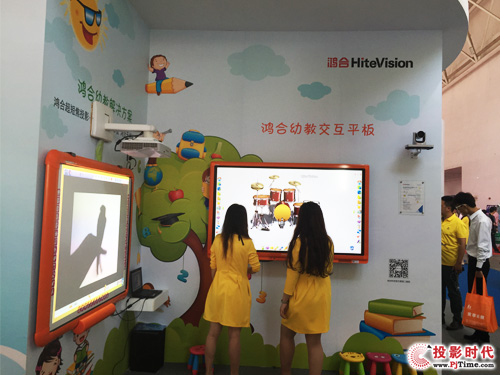 展会上,鸿合展示了首推100英寸显示红外白板,并搭建了演示区,该方案采用鸿合激光投影机H8W、鸿合红外白板8110W和鸿合壁挂高清展台G21,它们的全新搭配,将为教育用户带来更加清晰明亮的互动解决方案,就算坐在最后一排的同学也能清晰看到电子白板上的文字图片。