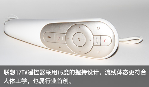 联想17TV 55S9i超高清智能电视标配遥控器外观设计简洁,表面可分为香槟金和布艺肌理两部分。按键区表面为香槟金色,上面排布着用户常用的功能按键。它还设有语音键哦,用户可以直接按住语音键,对着空鼠下达指令,电视则会完成对应的操作,使用起来还是十分方面的。在待会的评测中将会详细体验语音功能。