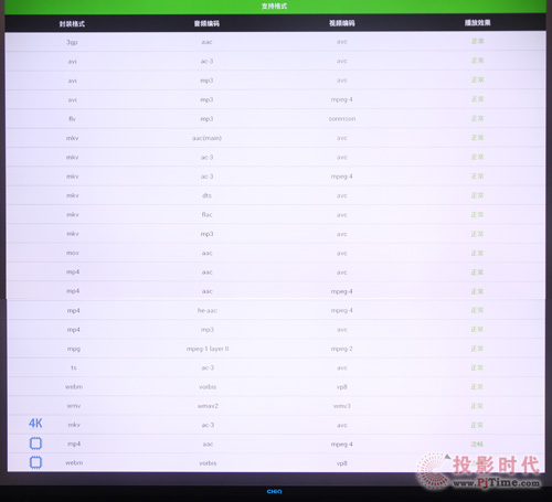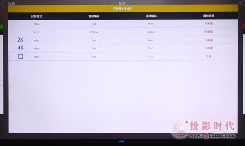 中,对RealVideo视频完全不兼容,另不知为何MKV封装AVC编码的4K视频都能支持,确不支持MKV封装AVC编码的2K视频播放。