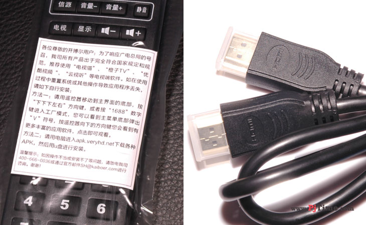 在随机附件方面,开博尔F1青春版与市面大部分智能盒子所带的配件相当,以往开博尔在随机配件方面都会带上开博尔自由品牌的HDMI高清线缆,但在F1中却采用了无牌的HDMI线缆,可见开博尔在针对主打性价比的机型上配件也略有缩水。