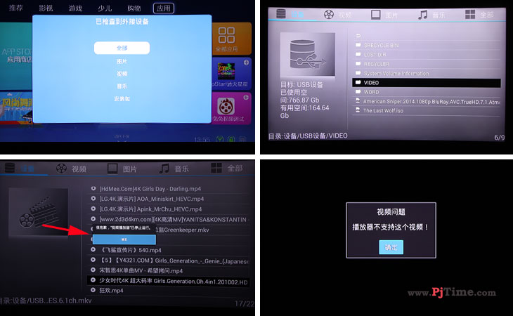 对于本地视频的兼容性,我们分别采用了目前常见的编码格式及封装格式的音/视频文件进行测试,在使用内置播放器时个别个别文件不能播放,播放超大码率视频文件时会出现假死现象。