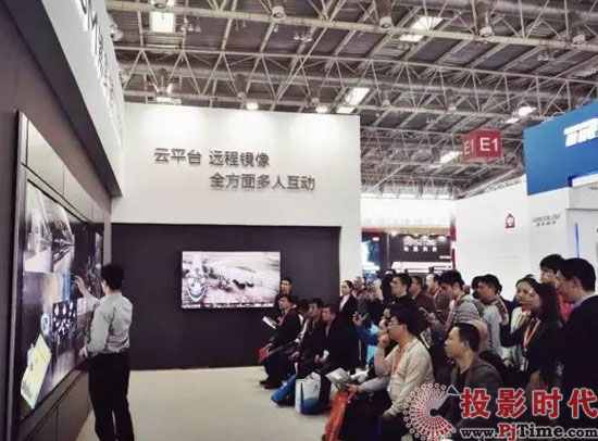 现场主角是一个9*4拼接的190英寸多人互动大屏拼接墙,每个单元为25英寸LPD激光显示单元,最多可以实现32点同时触摸操作,投影时代网记者现场进行了触控操作,感觉操作非常流畅,现场画面看起来也很舒畅,经了解该大屏是采用了其专利的激光荧光体显示(LPD)技术,LPD显示器由激光引擎、激光处理器及荧光面板核心部件组成。据介绍,LPD与传统市场上的液晶、LED及投影技术在技术原理上有本质不同,其成像原理有些类似早期的CRT,通过使用低功耗、阵列式固态激光引擎,激活印有荧光体的玻璃面板。多波速扫描设备的激光引擎扫于图形形状的荧光粉时,面板放射出红、绿或蓝光已构成图像像素。