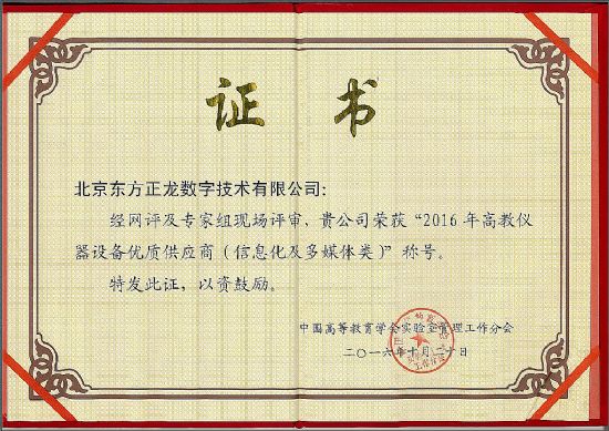 展会期间,由中国高等教育学会实验室分会在展会现场组织专家评选出“2016年高教仪器设备优秀供应商”,依据2016年度产品在高校的销售情况、维修与维护服务的响应、售后服务等情况评选产生。东方正龙榜上有名。在不断创新Newclass产品应用的同时,2016年NewClass携手NewCampus,强势推出着眼互联网应用的多款新产品和定制化操作系统升级服务,与合作伙伴共同努力,在全国范围内切实提升售后和维修服务水平,坚持售后服务的限时承诺,提供400技术支持、报修电话,快速现场服务等措施,继续推行终身免费为用户进行系统软件升级等增值服务。本次评选的用户评委中不乏NewClass的老用户,了解东方正龙的技术和多年坚持的服务措施,李侠副总经理在评比现场的陈述,得到了专家的广泛认同。