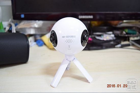 该摄像机重量160g,内置16G存储,单次充电支持拍摄全景照片50张以上或全景视频40分钟以上,内置扬声器和定向麦克风,采用球形设计,标准1/4英寸脚架孔,可配合第三方自拍杆和三脚架(标配可分离式手持/桌面两用支架,采用标准1/4英寸脚架孔连接,也可自由配合各种类型的自拍杆、三脚架获得更佳的拍摄体验)。