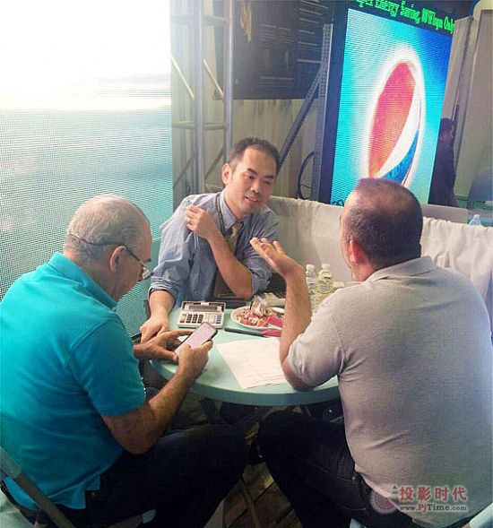 会展第一日,联诚发的所有产品就受到观展客户的青睐,所有人的眼光都聚焦在联诚发所展示的显示屏上。这次公司参展的主要产品是P2.5,P8,室外P2.5智能广告机,它们都是联诚发比较成熟的产品之一,高品质、高清画面、高性价比、大品牌等等,无不吸引着观展客户的眼光,个个对产品的画质惊叹不己。开展不到半个小时,广告机就在现场用现金被购买走了,P2.5、P8两款展示产品也被客人现场订购,更有数十家客户当日在现场下单订购,可谓异常火爆。