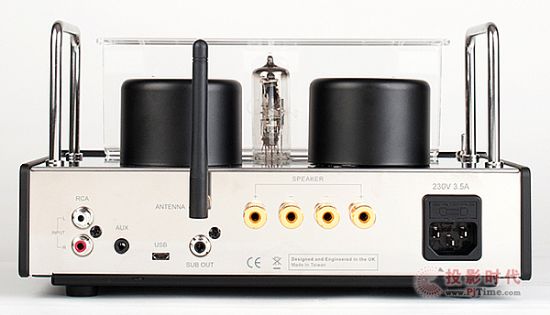 善于制作无线音箱的Blue Aura,扩大机当然也要无线。V40内建蓝牙4.0接收,且支持aptX,即便以手机当讯源无线传输,也能播放CD音质的音乐。除此之外,模拟输入有两组,一组是RCA,一组是3.5mm的mini jack,让您可以连接传统讯源。如果要连接计算机,做数字串流播放,可利用机背的micro B USB插孔。此外,V40还有一个RCA座的超低音输出,当您搭配书架音箱使用时,若嫌低音不够,这个输出可供用家连接超低音,完美组成2.1声道系统。