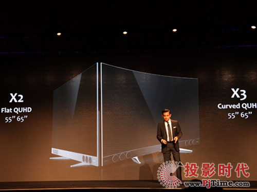 XESS系列新品X2、X3的推出,让2017年全球彩电市场前景更加充满想象。值得注意的是,张少勇在CES上公布,致力于投资未来技术,TCL还将推出极致超薄量子点电视,65英寸曲面将只有3.9mm厚度。此外,张少勇还现场介绍了另一款在CES上展出的概念产品,即全球首台采用了LED封装量子点技术的产品。张少勇表示,这款超前产品采用了最新的QD材料,实现热稳定性的大幅提升;同时,采用最新将量子点材料封装到LED中的技术,大幅提升阻氧和水的能力。这两款极具前沿创新科技的概念产品,不仅代表了未来量子点电视的核心方向,更为量子点的未来发展带来无限可能,引发全场热议。