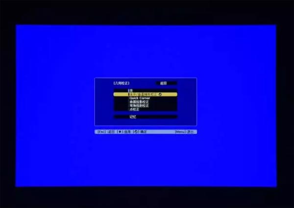 然后,按下【Esc】按钮,返回到【弯角投射校正】菜单,选择形状校正;