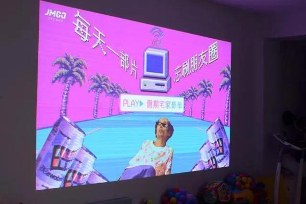 坚果V8的物理分辨率高达1080P,兼容4K高清,即使投射超过6米宽大屏,画面始终绚丽清晰。为了验证这点,使用了平时商场用来给电视放的高清片源,直接感受到高清画面的流畅和清晰。
