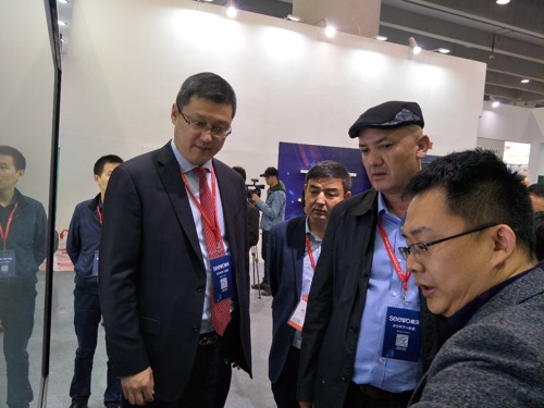 (新疆维吾尔自治区教育厅教育装备处长努尔·买买提听取长虹教育信息化解决方案)