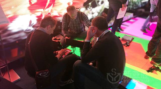 新亚胜展位上,许多欧美、中东的客户都目标明确,奔着“YES TECH”的品牌影响力以及魔幻舞台的强大魅力直接找到展位的。很多客户聊着聊着就直接坐在地砖屏上,甚或跪在地上继续谈业务。“没关系,我们就坐在这上面聊”,德国客户对于魔幻至尊MG7 P4.8能够做到主屏、地砖屏、球场屏、创意屏多种用途感到不可思议,尤其是地砖屏这一功能让他和他的伙伴们很感兴趣,所以他们就干脆席地砖屏而坐,谈起了具体的项目方案。