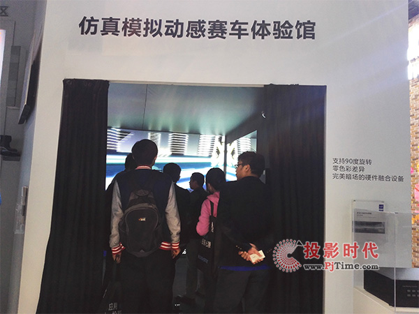 在本次展会上,除了可用眼睛看,小鸟科技还有好玩的!通过最新的仿真级融合处理器,小鸟在现场打造了一间仿真模拟动感赛车体验馆,超高清的融合画面,无色差的视觉体验,直接让参观者在馆内体验了一场速度与激情7。