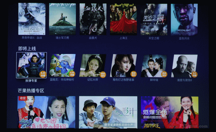 极米Z5无屏电视除了在UI界面上做出了革命性的突破外,在内容的呈现上也进行了更加合理的规划,同类别内容专题式推送、最新院线内容重点推荐、即将上线大片提前预告等都在早期UI上看不到的形式在Z5的界面上都一一的展现了出来。