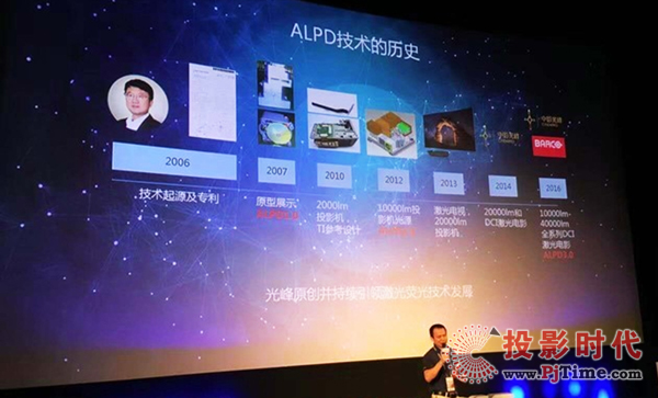 从技术角度看,ALPD® 1.0是入门级投影光源解决方案;ALPD® 2.0主流高亮投影光源解决方案;ALPD® 3.0是光峰所代表的高端投影光源解决方案。在演示效果、维护成本、亮度等方面取得了平衡。在经过对激光显示行业现状和未来前景进行分析研究后,光峰将激光加荧光粉两者进行整合,在ALPD® 3.0技术中实现了低成本+高性能(高亮度,色彩好,无散斑)。经过三次版本的升级迭代,光峰的ALPD®技术已经在多个领域具有爆发的可能。