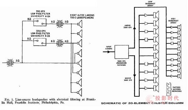 使用阵列式扬声器来增加指向性的方式可以追溯到十九世纪三十年代的早期的公共广播系统。长期以来,增加指向性一直被认为用以改善扩声系统的可懂度的。在十九世纪五十年代末六十年代初,音柱线阵列被大规模的使用。设计师们试图通过多单元线阵列的构造和滤波技术来控制指向性。传统的想法是指向性直接同阵列的大小有关。因此,要保持指向性恒定,阵列的有效尺寸需要随频率而变化。在十九世纪七十年代初,第一款真正意义上的恒定指向性设备以号角的形式出现了。尽管当它们被使用在大型阵列上时并没有实现完美的覆盖且带宽有限,但对点投射系统来说已是一个大的飞跃。