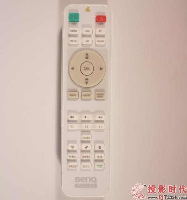 作为投影机很重要的配件当属遥控器,明基E610的遥控器也是进行了更新升级,特别配备了3个自定义快捷键方便用户把自己常用的程序链接起来,一键式操作,让操作变得更加简单。另外,明基E610天线也专门做了调整,将天线做了内置处理,强化了WiFi的通讯协议,这使得传输速度更快更稳定,这也让用户强化了手机APP遥控操作。