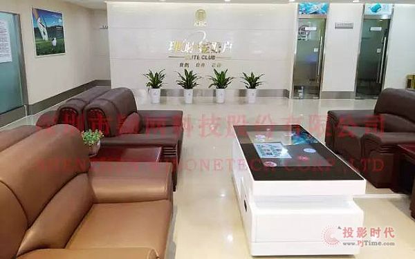 在贵宾等候区,为给贵宾客户提供专享客户服务,特别配置了互动营销茶几,在操作上,终端支持双向多人同时体验设备,按需控制产品旋转角度及显示画面。在应用上,支持查询各类理财产品及金融服务,并支持一键将感兴趣的产品推送至中央区域分享交流,移动端扫码自动跳转产品页面,便于银行为贵宾客户提供专属理财服务。