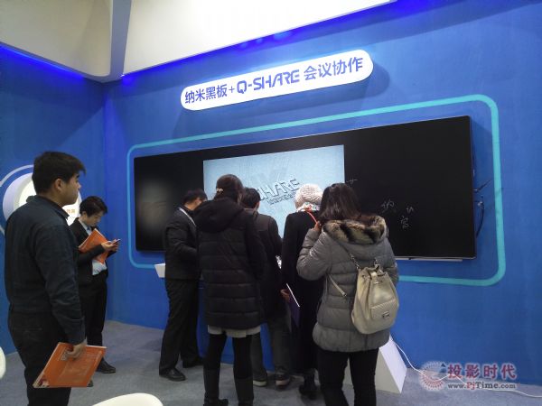 除了在互动体验上做足功课外,同辉信息推出的智能会议协作方案也是一大亮点,引发了与会者的极大热情。该方案由智能纳米黑板和Q-Share智能交互会议终端联合打造,可以实现一键投屏、多人会议分享。