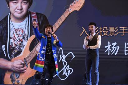集体签约完毕,一曲《老鼠爱大米》再次将本场活动推向高潮。杨臣刚老师作为入影品牌官方推广大使到场支持,不仅为大家带来歌曲串烧,更与现场互动,动情分享与投影手机结缘、担任入影投影手机推广大使的特别感受。