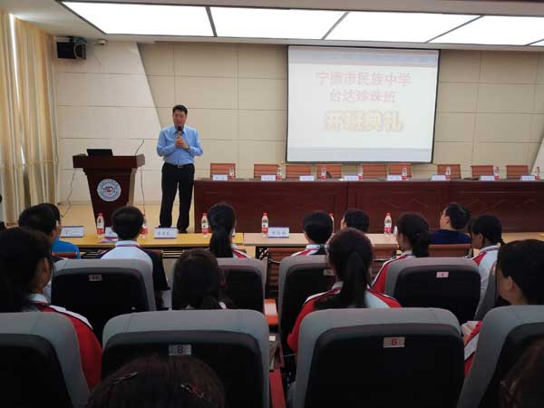 宁德民族中学是以少数民族为主的学校,受到台达资助的50名珍珠生三分之二来自畲族。台达积极响应习近平总书记"全面实现小康,少数民族一个都不能少…"的号召。希望让这些少数民族的孩子们早日脱贫脱困。20年前,习总书记曾为宁德民族中学题词"发展民族教育,培育民族人才"。在此次的开班仪式上,福安市副市长、宁德民族中学第一书记林海表示:今年是学校建校60周年,台达的资助是一个重要的开头,相信这批少数民族的珍珠生未来能为社会做出巨大贡献,同时也勉励他们,要志存高远、奋力拼搏,不要辜负台达的爱心,要在内心种下爱与责任的种子。