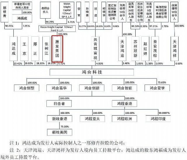 鹰发集团为招股书提交前一年突击入股鸿合科技的四位PE之一,其余三家分别是共青城富视、苏州冠新、泰安茂榕。