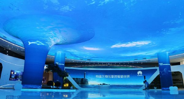 洲明为华为总部展厅搭建的1600平米LED高清大屏,其中包含大面积的高难度、个性化的异形显示屏,整个项目运用了多项行业首创技术。这些洲明大屏以先进的显示技术,完美展现了华在5G所有体系包含硬件、软件、连接、基站、服务器等多方面的全场景解决方案,有效提升了华为总部展厅的产品演示、客户接待水平,全面助力华为5G技术在各大企业、行业的落地。