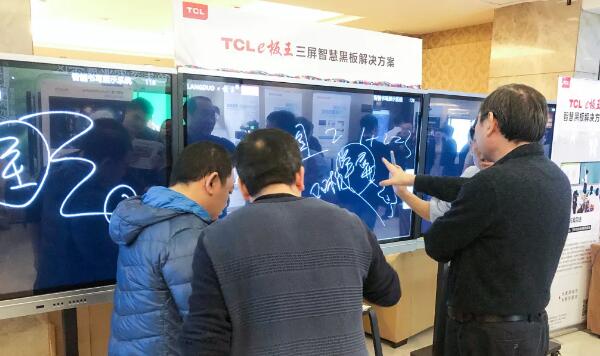 本着“数据驱动创新,智慧提升服务”的主题,在本次年会上将涵盖智慧教学方式的变革,大数据融合与创新以及教育技术设施建设管理与服务模式创新的相关内容。在本次江西省的教育年会TCL商用则带去了刚刚在ISVE亮相不久的TCL-e板王智慧黑板解决方案。