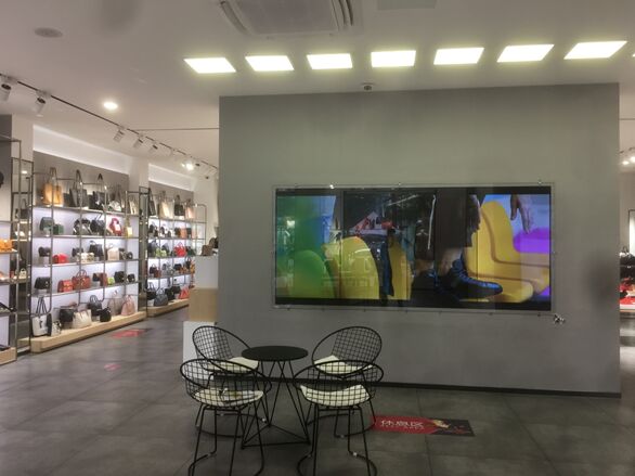 例如试穿区和休息区的拼接海报,则可以播放品牌宣传视频以及商品场景图,既装饰店面,又能营造舒适氛围,在试鞋过程中无形影响顾客心理。原本只是摇摆于“试穿”和“购买”之间,即使导购员费尽口舌,顾客也难回心转意,却可能拜倒在拼接海报“含情脉脉”的暗示中。