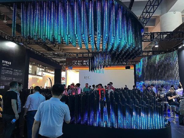 本次展会上,洲明旗下全资子公司蔷薇科技也为现场观众带来了全新概念的视频灯光设计。蔷薇科技的展位利用数字新思路作为主轴,在装置设计上,用抽象的波形,展现丝绸的动态。灯光设计上,先以光影的汇集、流动代表繁忙的海上丝路枢纽,借由感测器感应观赏者的移动,让色彩随着人的动态更为灵动。