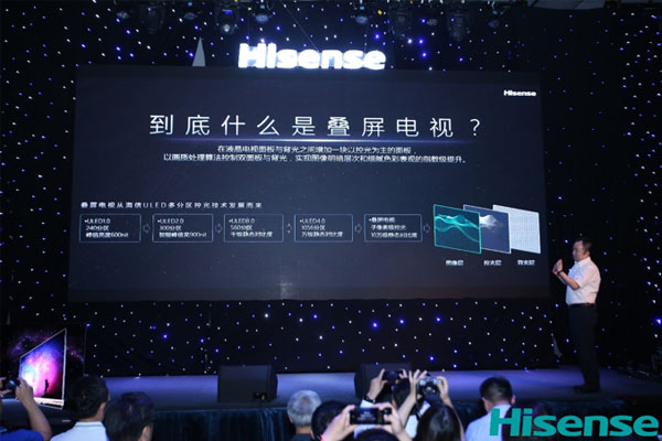 海信电器首席科学家刘卫东博士介绍,叠屏电视采用了上下两块面板的叠屏显示方案,采用海信独有的叠屏控制算法,行业首次实现背光层、控光层、图像层的高效协同控制,将液晶电视的色彩、对比度等画质性能指标实现了指数级大幅提升。