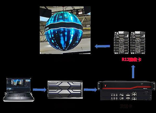 使用球形主控对输出画面进行处理,实现球形屏画面完整显示。