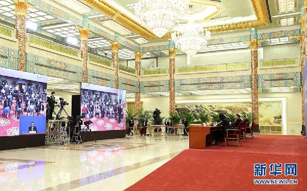 ▲全国两会·梅地亚新闻中心洲明UMini大屏(图片来自新华网)