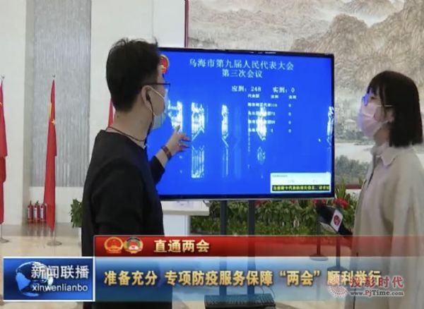 飞利信项目经理刘海洋受乌海新闻联播采访,介绍会议报到系统
