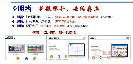 对于医疗行业如何实现医疗信息化,马主任认为医疗信息化不是对过去模式的全盘否定,而是对以往模式的更新,对过去医疗行业中的刚需,如对讲呼叫、床头卡等具有不可替代性的功能进行重点发展,而对其他低值的功能则可以选择通过新的功能进行代替。她提到“要对行业的各个方面进行深入思考、精益覃思、析微察异、去伪存真”。