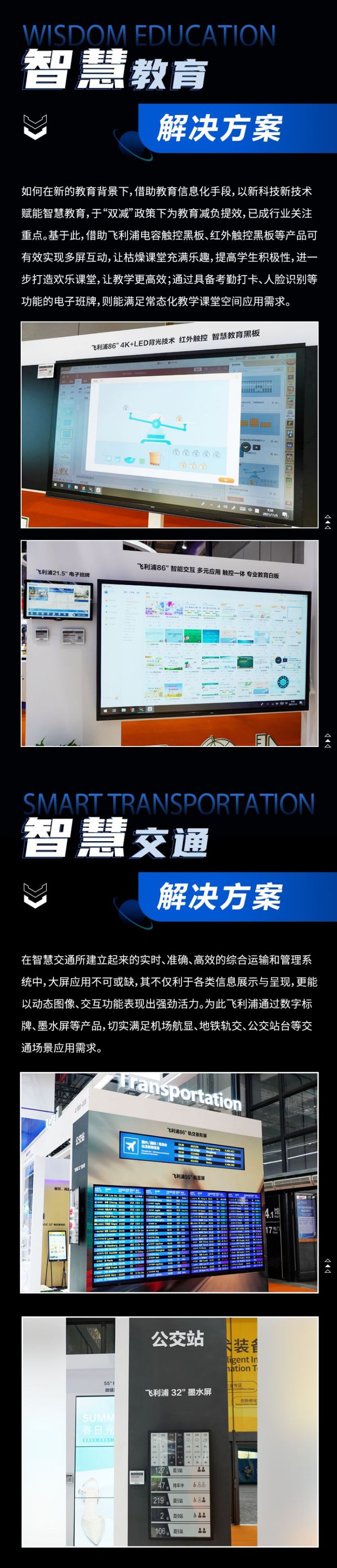 在智慧交通所建立起来的实时、准确、高效的综合运输和管理系统中,大屏应用不可或缺,其不仅利于各类信息展示与呈现,更能以动态图像、交互功能表现出强劲活力。为此飞利浦通过数字标牌、墨水屏等产品,切实满足机场航显、地铁轨交、公交站台等交通场景应用需求。