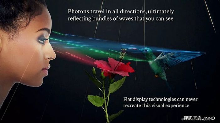 更重要的是,设计者要实现的场景要以无数波前的形式同时出现,这时用户的眼睛才可以随时关注场景中的任何一点,就像在现实生活中一样,而用户没有关注的区域会表现出离焦的模糊状态,这也和我们现实生活中所感受的情况一样。除此之外,真实世界中光的所有属性——反射、折射、衍射等也都要被完全再现。最重要的是,这些过程的实现不需要特殊的眼镜、头部追踪或其他配件。