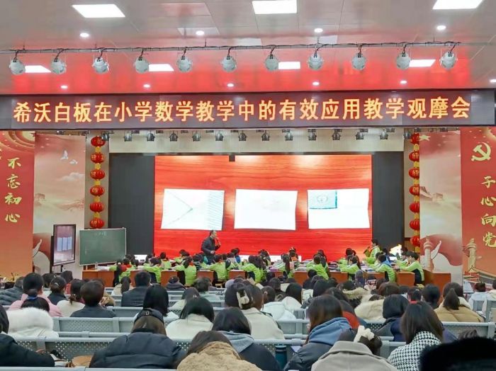 为了提升小学数学教师的信息化应用水平,以学生的数学核心发展为立足点,以希沃白板的交互性、趣味性、便捷性为基础,把信息技术与小学数学课堂教学进行深度融合,有效改进课堂教学的交互方式,激发学生自主、合作、探究式学习能力。于12月21日上午,淮北市教育局教研室、淮北市第三实验小学、淮北市小学数学名师工作室、《希沃白板在小学数学教学中的有效应用的研究》省级课题组联合主办了“希沃白板在小学数学教学中的有效应用”教学观摩会,淮北市教育局教研室田志锋老师、淮北市教育局电教馆王玉老师和淮北师范大学梅松竹教授,以及来自淮北市直属学校的小学数学教师、亳州市卓越教师团队、淮师大研究生团队共同参加了此次活动。