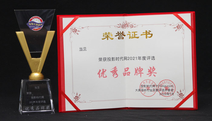 除了产品获奖之外,在品牌端,当贝2021年还获得了京东“2021年度最受信赖新锐品牌奖”、2021中国联通合作伙伴大会“卓越合作奖”、 由陈思诚监制、戴墨执导,肖央、任达华、文咏珊、陈雨锶、宋洋、李治廷主演的电影《误杀2》智能投影首席合作伙伴等行业殊荣。