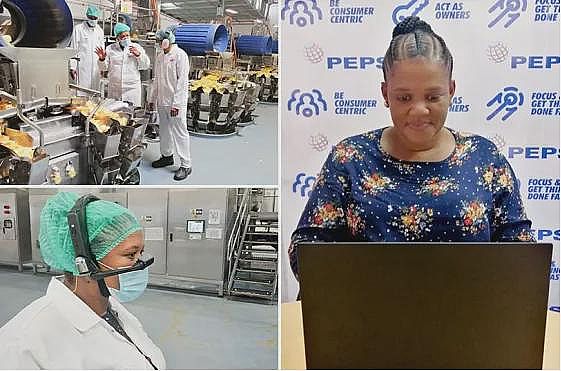 百事工厂员工佩戴AR设备进行工作