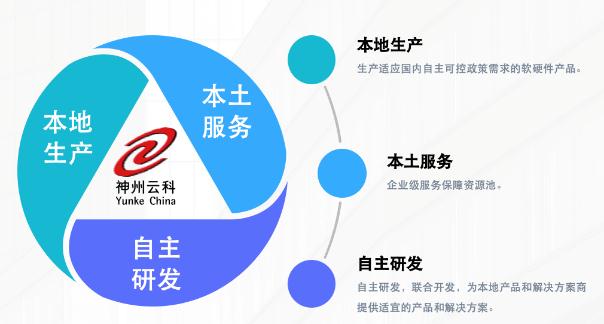 紧跟国家自主可控战略,神州云科通过“本地生产、本土服务、自主研发”的战略路径,打造自主品牌、生产自主产品,为合作伙伴提供神州数码自主品牌、自主知识产权的云基础设施产品、服务及解决方案。