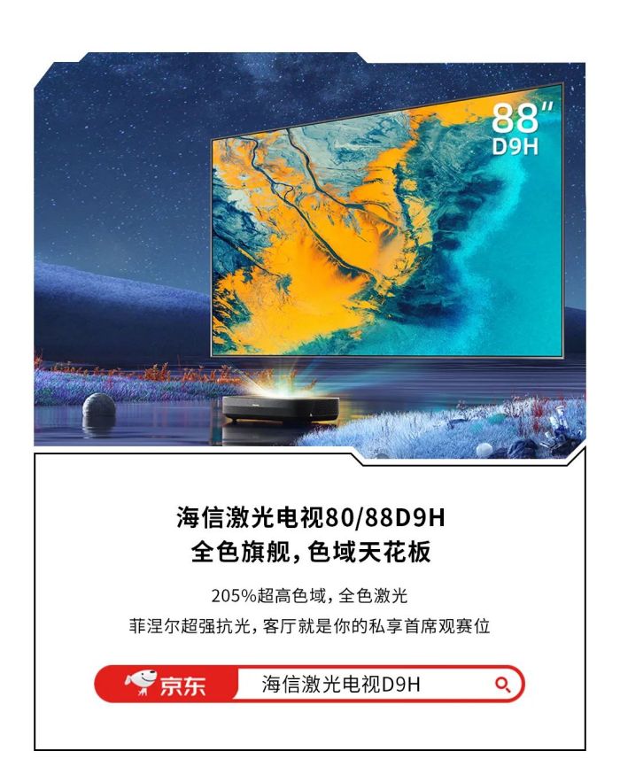 全球首款全色激光电视100L9Pro,全色光源架构,4K超高清画质,搭配天穹升降音场结构,低音浑厚,高音清澈灵动;外置哈曼卡顿低音炮,澎湃大声场,用户仿佛置身世界杯现场。