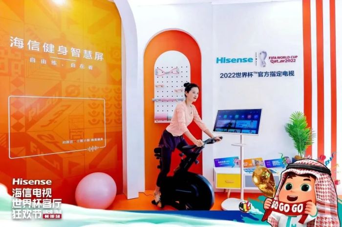 作为狂欢节的体验馆主展区,海信电视携ULEDX参考级影像产品U8H、大屏护眼旗舰产品海信激光电视100L9Pro、海信健身智慧屏、海信电竞显示器,联合芝华仕、腾讯游戏,打造4大观赛体验空间:世界杯限定最佳观赛客厅、沉浸影院客厅,电竞游戏客厅以及健身达人客厅。