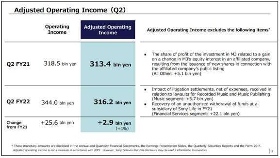 音乐业务(Music)销售收入较去年同期大涨32%,至3,593亿日元,营业利润为787亿日元,同比大增56%。主要得益于录制音乐和音乐发行的销售增加,付费订阅流媒体服务收入增加以及汇率的积极影响等。