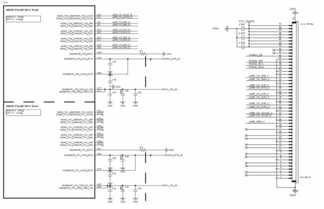 在传输效率上,目前eDP单lane传输速率最高为8.1Gbps,而VBO单lane传输速率为最高仅为2.97Gbps,同时由于eDP采用了微封包结构,能够实现更多数据的同时传输;在空间占用方面,eDP可以使用更少的数据线对来传输更多的数据量,以目前主流的显示分辨率,eDP接口仅需4对高速差分信号线,有效节省线材数量和空间成本的同时,能更好地兼容后续8K分辨率的需求;在安全性方面,eDP电路简洁,且电磁干扰小,同时具有强大的版权保护功能。