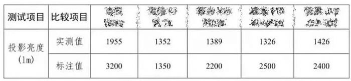 据北京消协、阳光数据测试结果显示,5款被测试产品中4款测试产品标注的投影亮度均高于实测值。其中,一款产品亮度标注值为3200lm,但实测值为1955lm,实测亮度只有标称的61%;另一款亮度标注值为2500lm,但实测值更是低值为1326lm,实测亮度只有标称的53%。