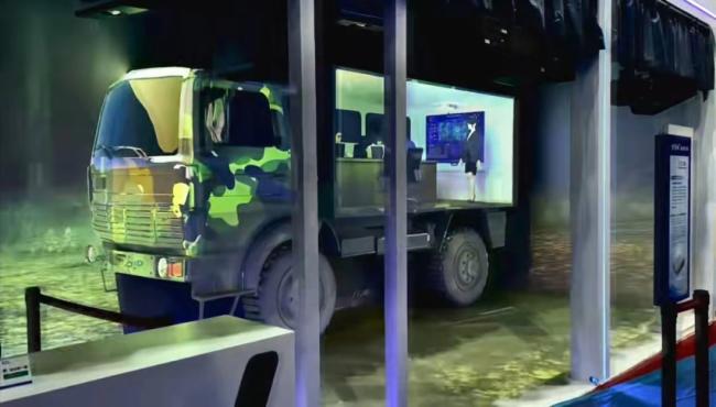 3D mapping投影秀以模拟车体情景展示加固型4K超短焦三色激光投影机的车载应用,用沉浸式体验让观展者仿佛置身在实景中。创意场景分别描述了战地方舱车、家庭房车等场景元素,通过视觉、听觉的双重震撼体验,展示国画加固型激光投影机在各种振动环境下的良好使用体验。